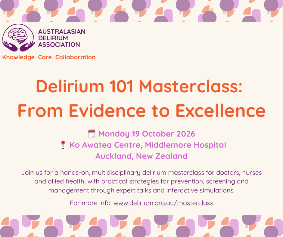 The Australasian Delirium Association was formed by health professionals from multidisciplinary backgrounds who recognised the need to bring together scientific evidence to improve clinical practice around delirium across a diverse range of specialties.
